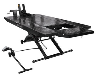 ProCycle XLT Motorcycle ATV LiftThe XLT lift comes with two 12" side extensions, a wheel vise and dolly. An excellent choice for anyone looking to service ATVs, motorcycles, or anything that needs a wider (93" long x 48") table. |